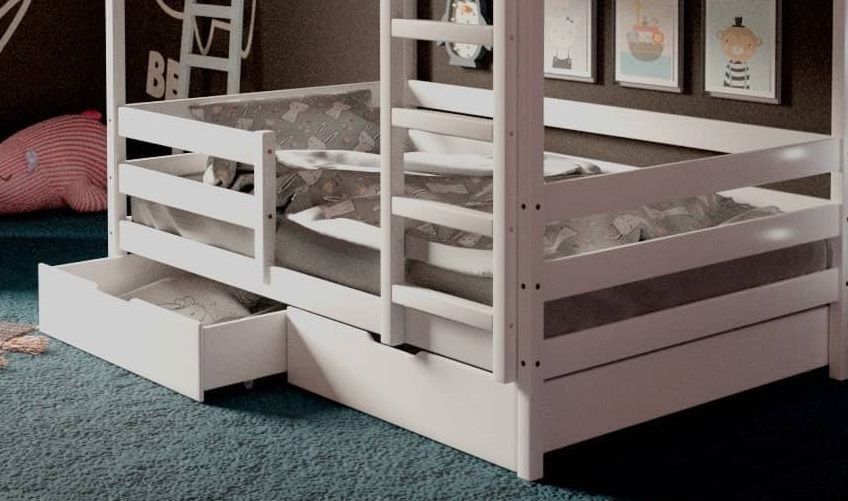*Стоимость указана за модули: Кровать-домик двухъярусная 80*160 Белый (Ящики в стоимость не входят)