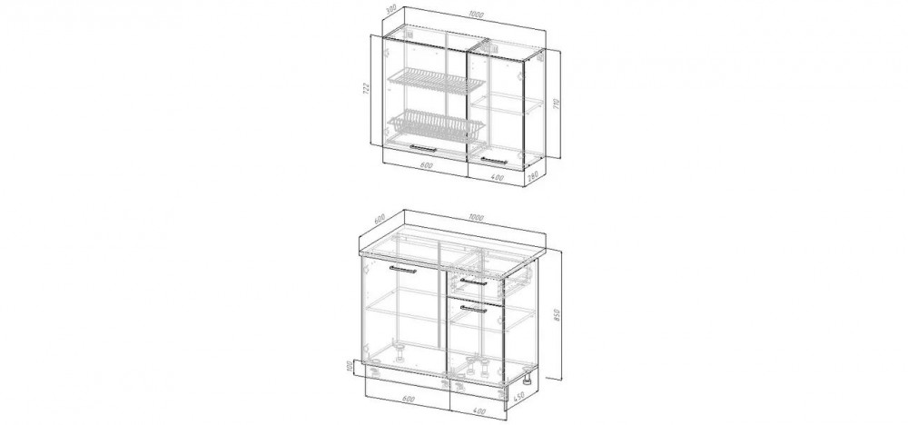 Фасады верхних модулей со свесом 12 мм дают возможность использовать без установки ручек.